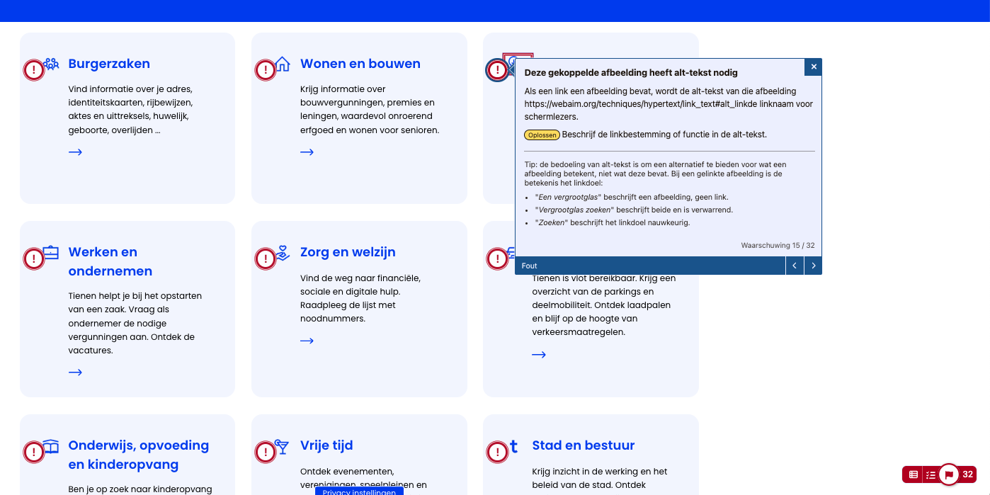 - Een rapport met opmerkingen ivm toegankelijkheid bekijken voor pagina's die bezocht werden.